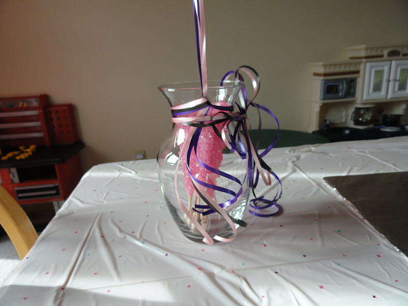 | Balloons, banner and cds. The owls are from the daycare. And I wish we could have done something with that light. |